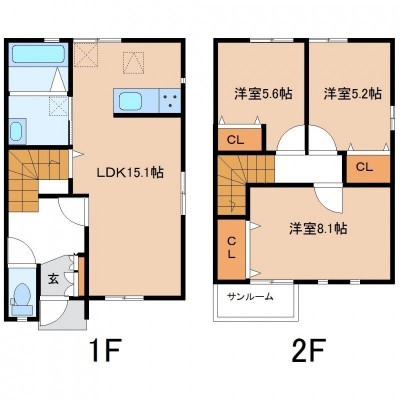 | 間取り | 3LDK 【洋室5.6帖 洋室5.2帖 洋室8.1帖 LDK15.1帖】 |