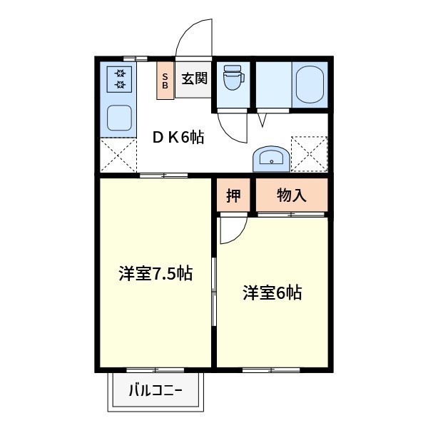 2DK(39.74m²)└ 洋室6帖 洋室7.5帖 DK6帖