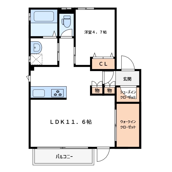 1LDK(44.37m²)└ LDK11.6帖 洋室4.7帖