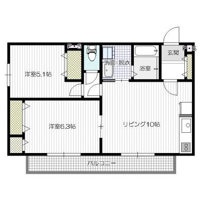 2LDK(49.68m²)└ 洋室5.1帖 洋室6.3帖 LDK10帖