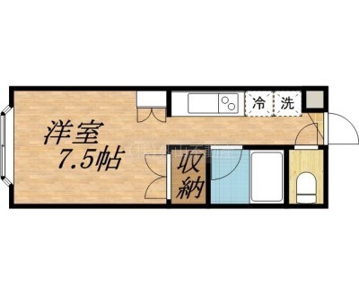 ワンルーム(18.63m²)└ 洋7.5