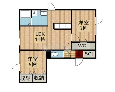 2LDK(58.38m²)└ LDK14×洋6×洋5