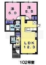 2LDK(51.75m²)└ LDK12.3×洋5.5×洋6