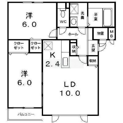 2LDK(56.3m²)└ LDK12.4×洋6×洋6