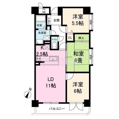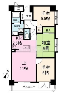 3LDK(68.14m²)└ LD11×K2.5×洋6×洋5.5×和6