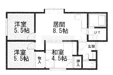 3LDK(58m²)└ LDK8.5帖 洋室5.5帖 洋室5.5帖 和室4.5帖