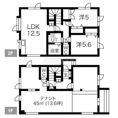 ここに注目!1F~店舗(45㎡) 2F~住居(2LDK・69.86㎡・シャンドレ・エアコン!