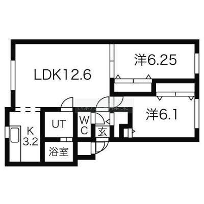 2LDK(60.35m²)└ LD12.6帖 K3.2帖 洋室6.25帖 洋室6.1帖