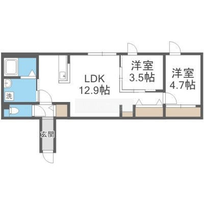 2LDK(48.81m²)└ LDK12.9帖 洋室4.7帖 洋室3.5帖