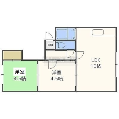 2LDK(48m²)└ LDK10帖 洋室4.5帖 和室4.5帖
