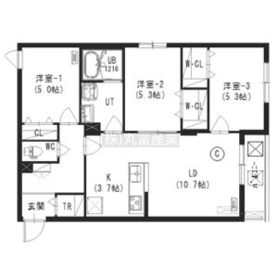 3LDK(69.84m²)└ LD10.7帖 K3.7帖 洋室5.3帖 洋室5.3帖 洋室5帖