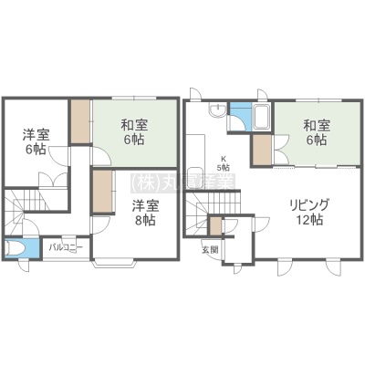 4LDK(86m²)└ LD12帖 K5帖 和室6帖 洋室8帖 和室6帖 洋室6帖