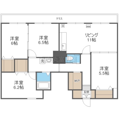 4LDK(89.5m²)└ LDK11帖 洋室6帖 洋室6.5帖 洋室6.2帖 洋室5.5帖