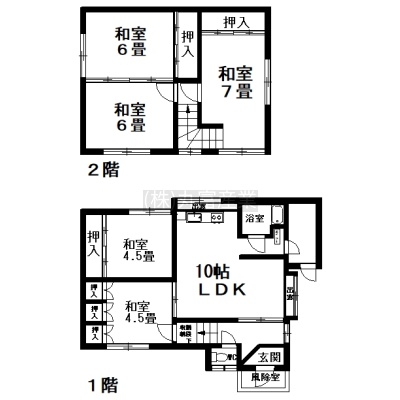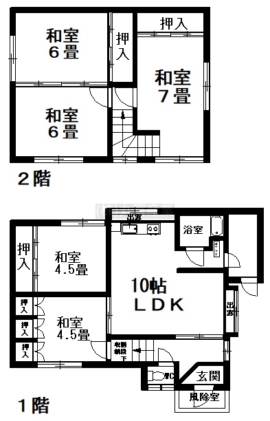 建物の階建 地上2階建 総戸数 構造 木造 間取り 5LDKLDK10帖 和室4.5帖 和室4.5帖 和室7帖 和室6帖 和室6帖 契約期間 2年間 権利金 住宅保険 引渡し 即時 管理人 取引態様 仲介 物件No 設備・特徴 - ガス設備