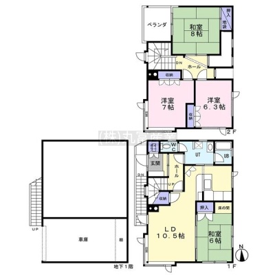 4LDK(123.5m²)└ LD10.5帖 和室6帖 和室8帖 洋室7帖 洋室6.3帖
