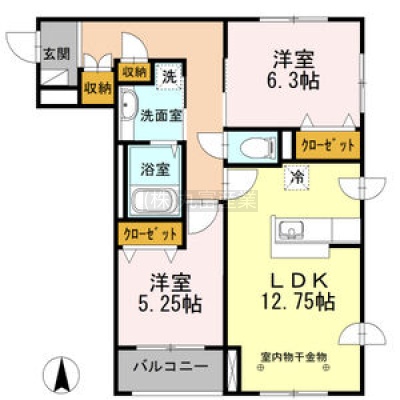 2LDK(61.72m²)└ LDK12帖 洋室6.3帖 洋室5.25帖