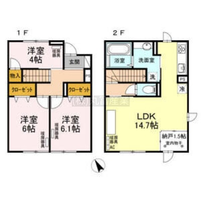 3LDK└ LDK14.7帖 S1.5帖 洋室4帖 洋室6帖 洋室6.1帖