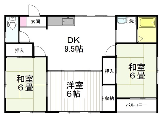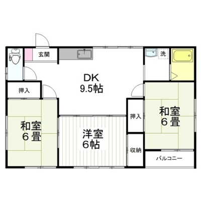 3DK(59.94m²)└ 洋室6帖 和室6帖 和室6帖 DK9.5帖
