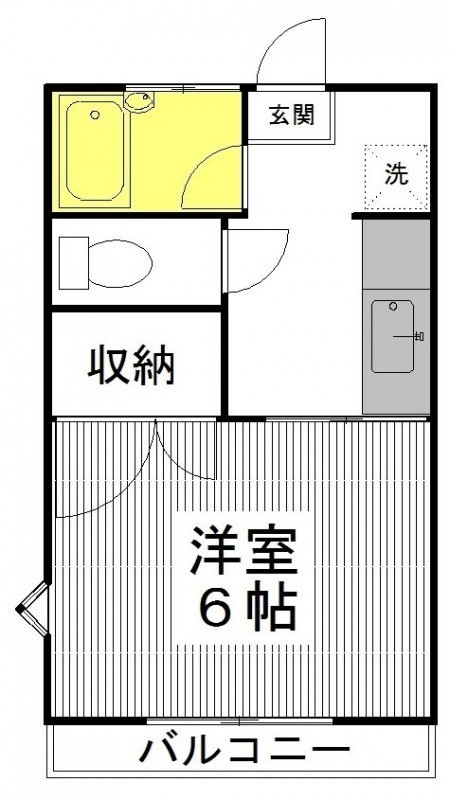 1K(21.06m²)└ 洋室6帖 K