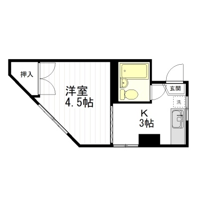 1K(15m²)└ 洋室4.5帖 K3帖