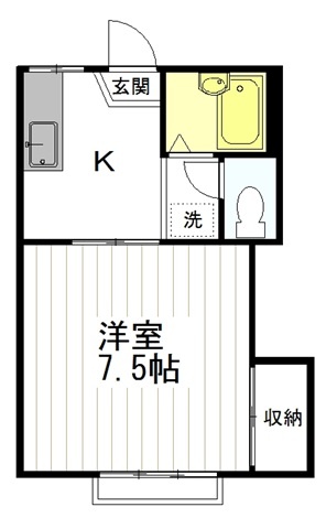 1K(24m²)└ 洋室7.5帖 K3帖