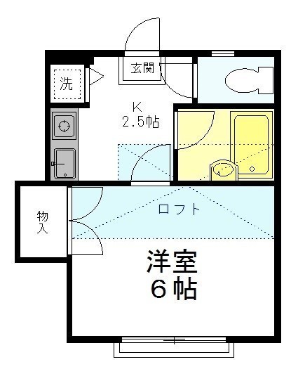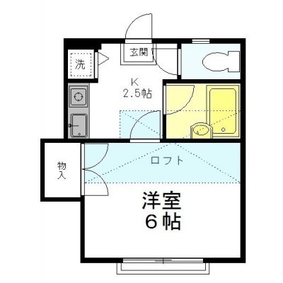 1K(19.8m²)└ 洋室6帖 K2.5帖
