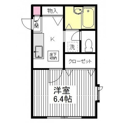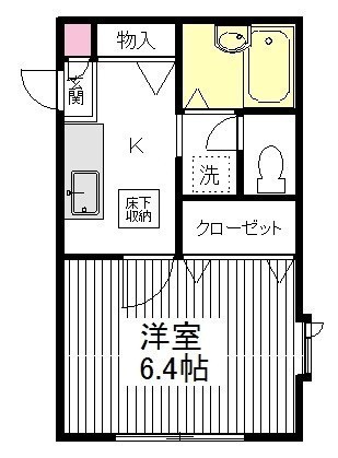 1K(23m²)└ 洋室6.4帖 K2.5帖