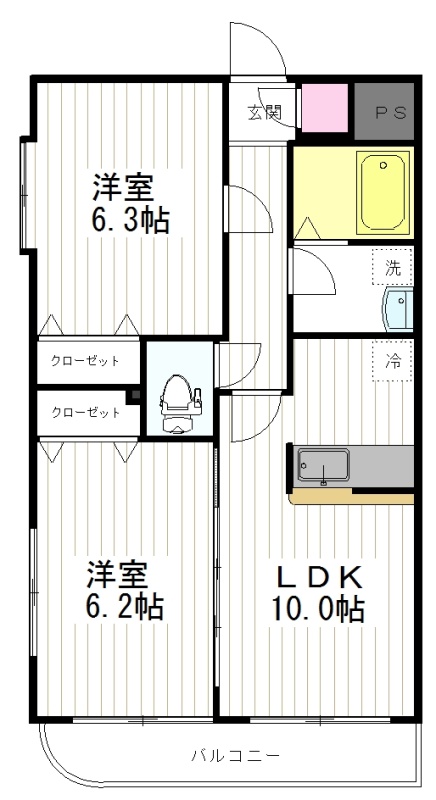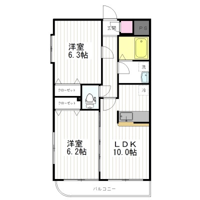 2LDK(51.72m²)└ 洋室6.3帖 洋室6.2帖 LDK10帖