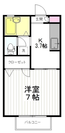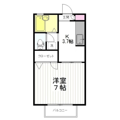 1K(24.5m²)└ 洋室7帖 K3.7帖