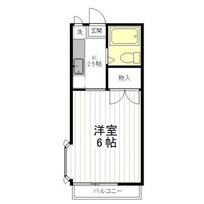 1K(20m²)└ 洋室6帖 K2.5帖