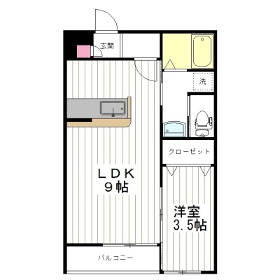 1LDK(31.3m²)└ 洋室3.5帖 LDK9帖