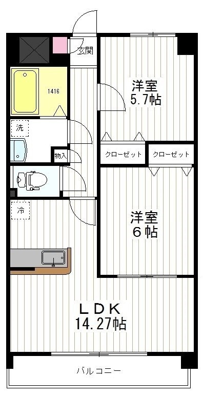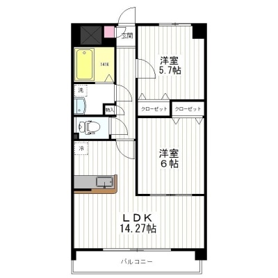 2LDK(57.57m²)└ 洋室5.7帖 洋室6帖 LDK14.27帖