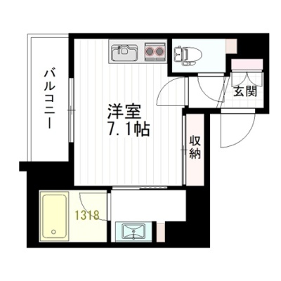 ワンルーム(24.82m²)└ 洋室7.1帖