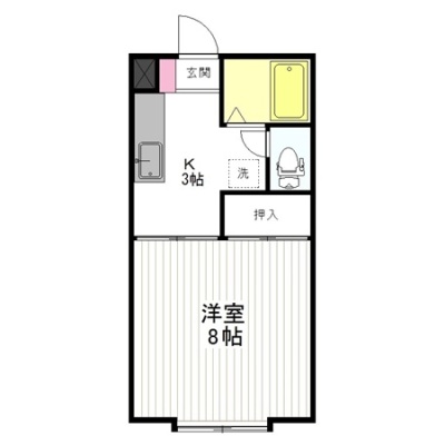 1K(24m²)└ 洋室8帖 K3帖