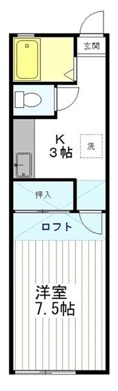 1K(25m²)└ 洋室7.5帖 K3帖
