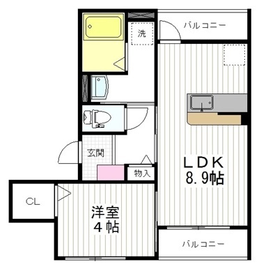 1LDK(34.4m²)└ 洋室4帖 LDK8.9帖