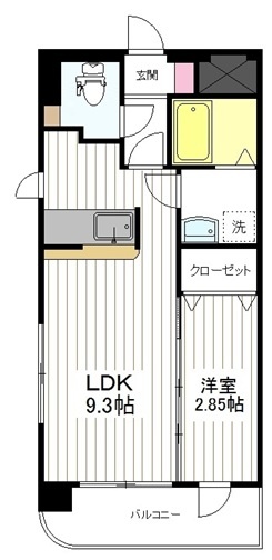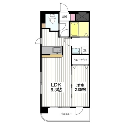 1LDK(29.37m²)└ 洋室2.85帖 LDK9.3帖