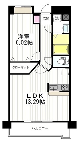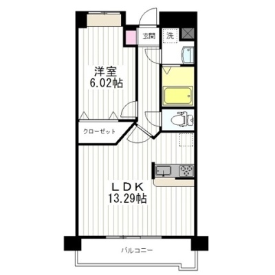 1LDK(45.82m²)└ 洋室6.02帖 LDK13.29帖