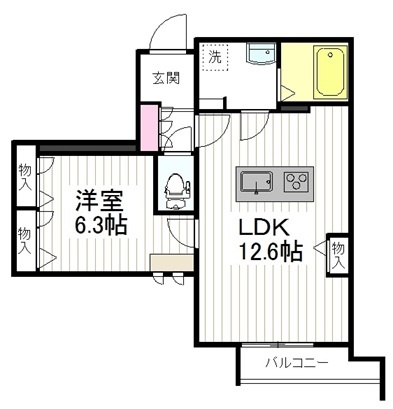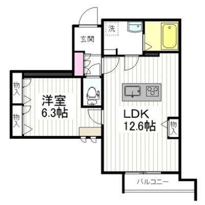1LDK(48.67m²)└ 洋室6.3帖 LDK12.6帖