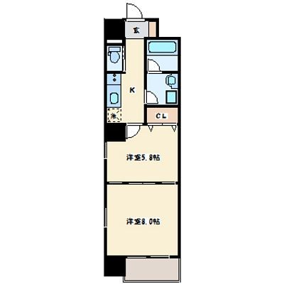 2K(38.84m²)└ 洋室8帖 洋室5.8帖 K2帖