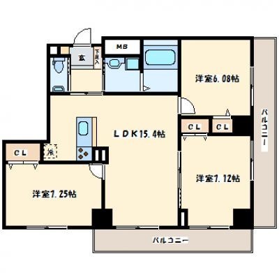3LDK(72.47m²)└ LDK15.4帖 洋室7.25帖 洋室7帖 洋室6.08帖