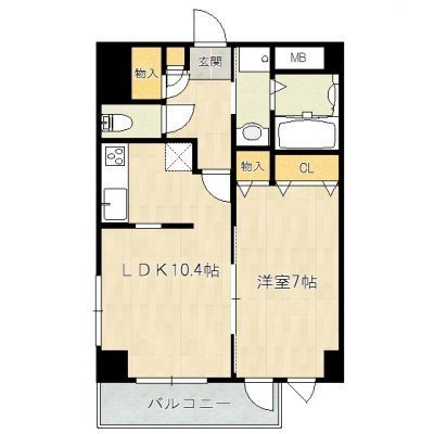 1LDK(42.64m²)└ LDK10.4帖 洋室7帖