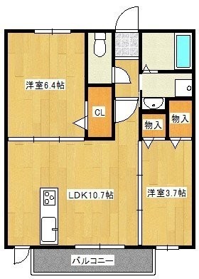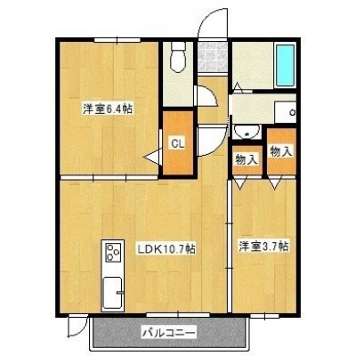 2LDK(48.75m²)└ LDK10.7帖 洋室6.4帖 洋室3.7帖