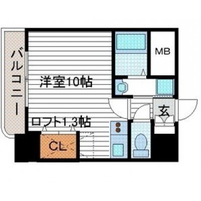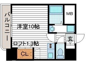 ワンルーム(25.5m²)└ 洋室10帖 その他1.3帖