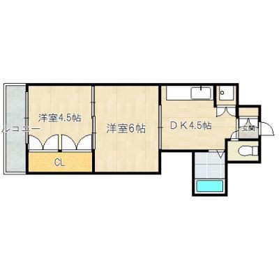 2DK(31.5m²)└ 洋室6帖 洋室4.5帖 K4.5帖