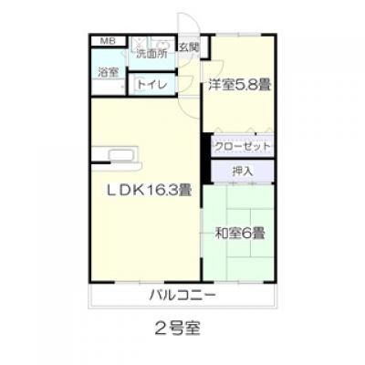 2LDK(60.08m²)└ LDK16.3帖 和室6帖 洋室5.8帖