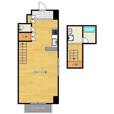 ワンルーム(34m²)└ LDK10.5帖