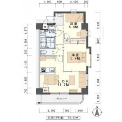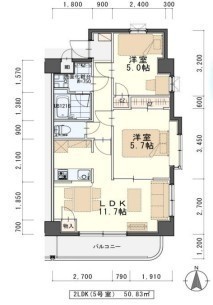 2LDK(50.83m²)└ LDK11.5帖 洋室5.7帖 洋室4.9帖