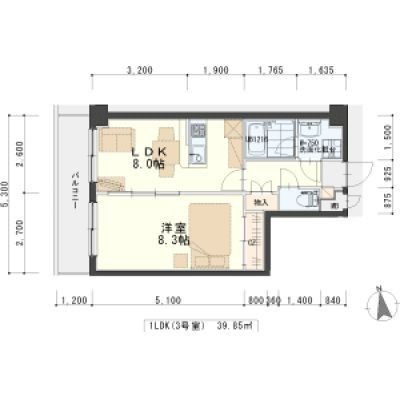 1LDK(39.85m²)└ LDK8帖 洋室8.3帖