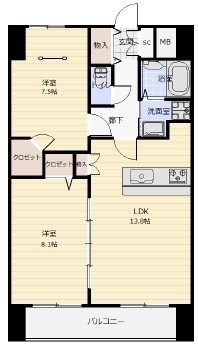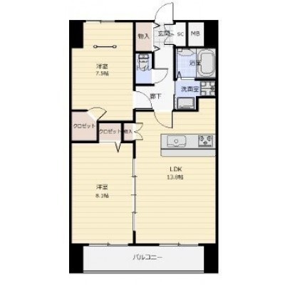 2LDK(64m²)└ LDK13.8帖 洋室8.1帖 洋室7.5帖